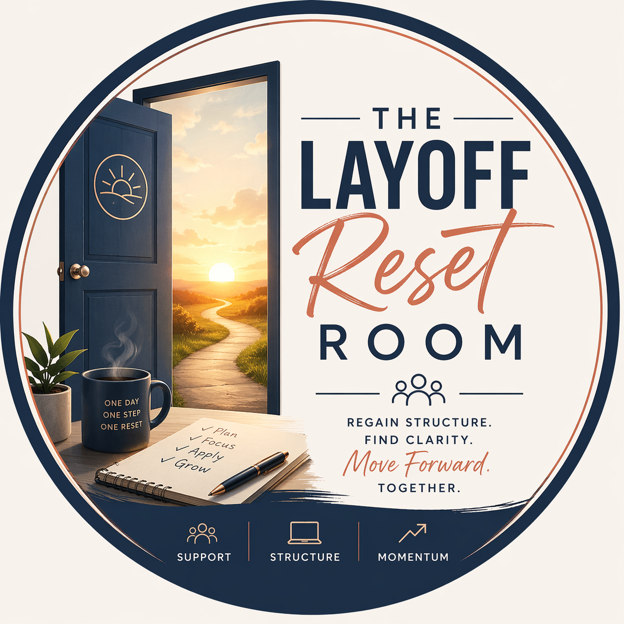 A daily reset and coworking experience for professionals who've been laid off and need structure, connection, and momentum, so they can move forward from here with confidence.